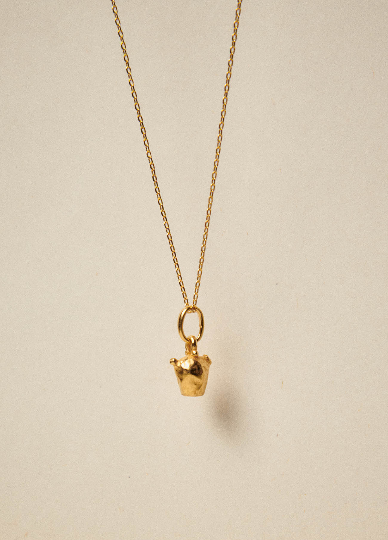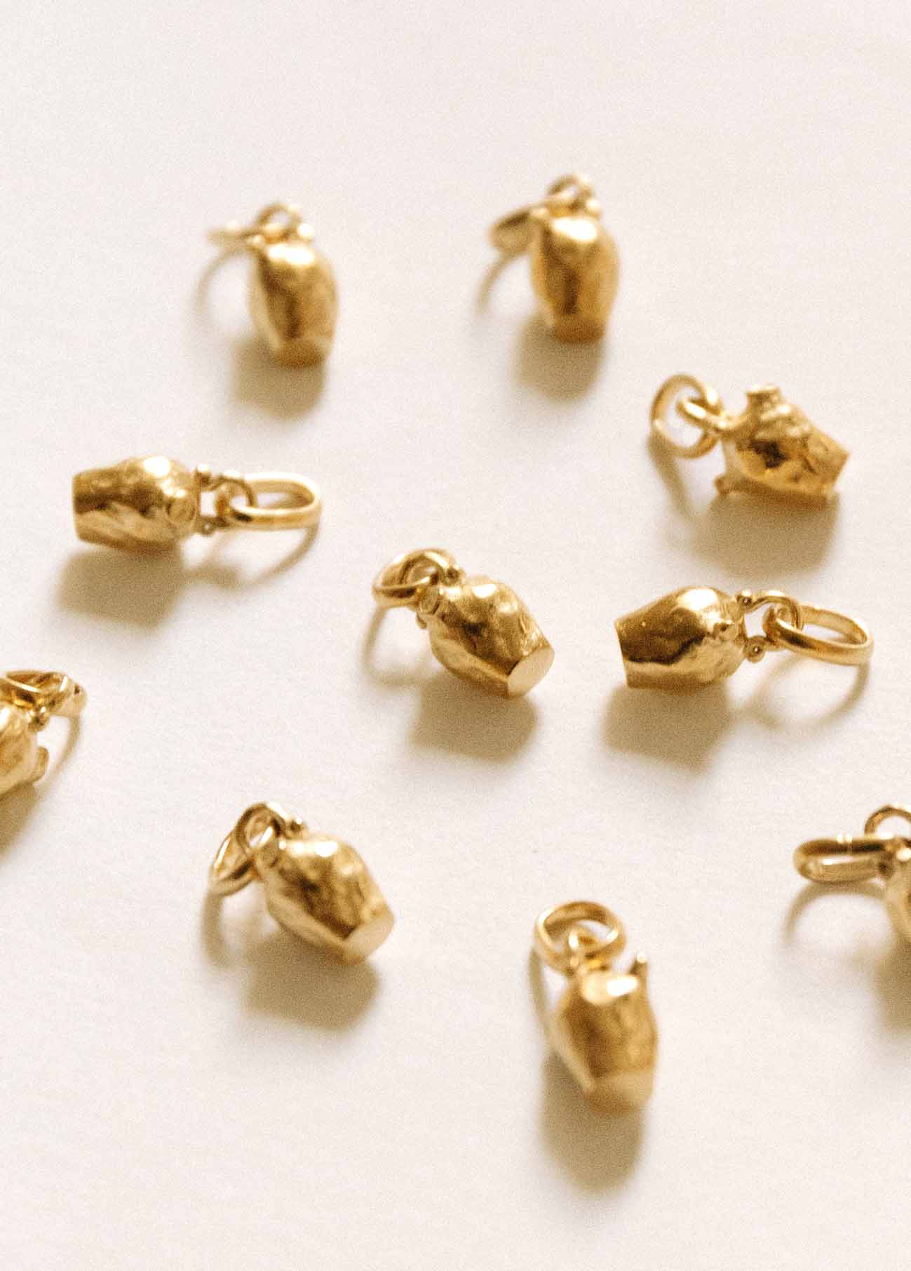 Un homenaje dorado a nuestras raíces. El charm Botijo es una pequeña pieza bañada en 3 micras de oro de 18 quilates, con forma del icónico recipiente mediterráneo que, durante siglos, ha conservado el agua fresca como símbolo de sencillez, tradición y belleza cotidiana. En muchas culturas, el botijo representa la hospitalidad y el vínculo con la tierra.