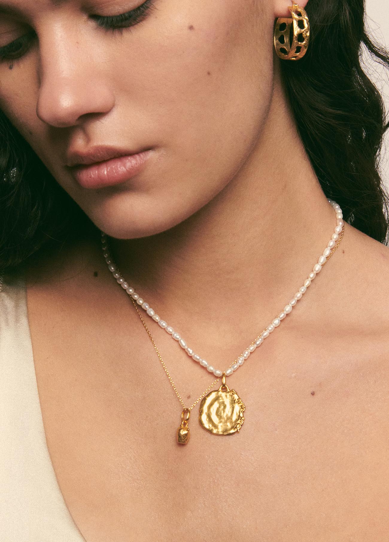 Our Cult Edition collection consists of limited Mediterranean-inspired jewelry made of brass and plated with a flash of gold. They are unique pieces, larger and more striking, which we define as Fashion Jewelry. They are composed of crystals and pearls, so they require the same care as gold-plated jewelry.