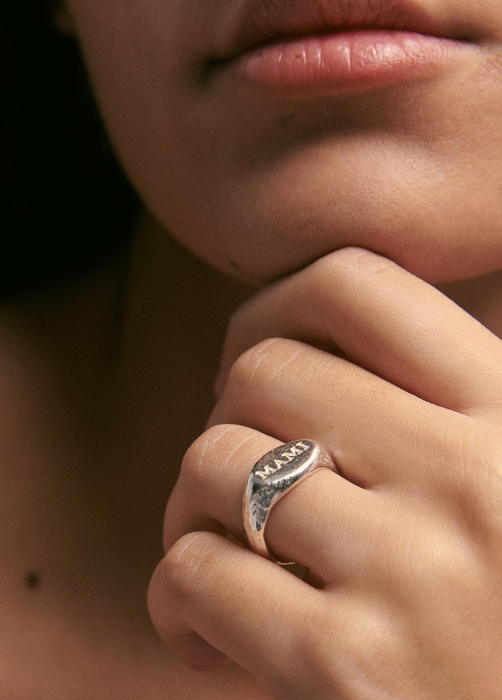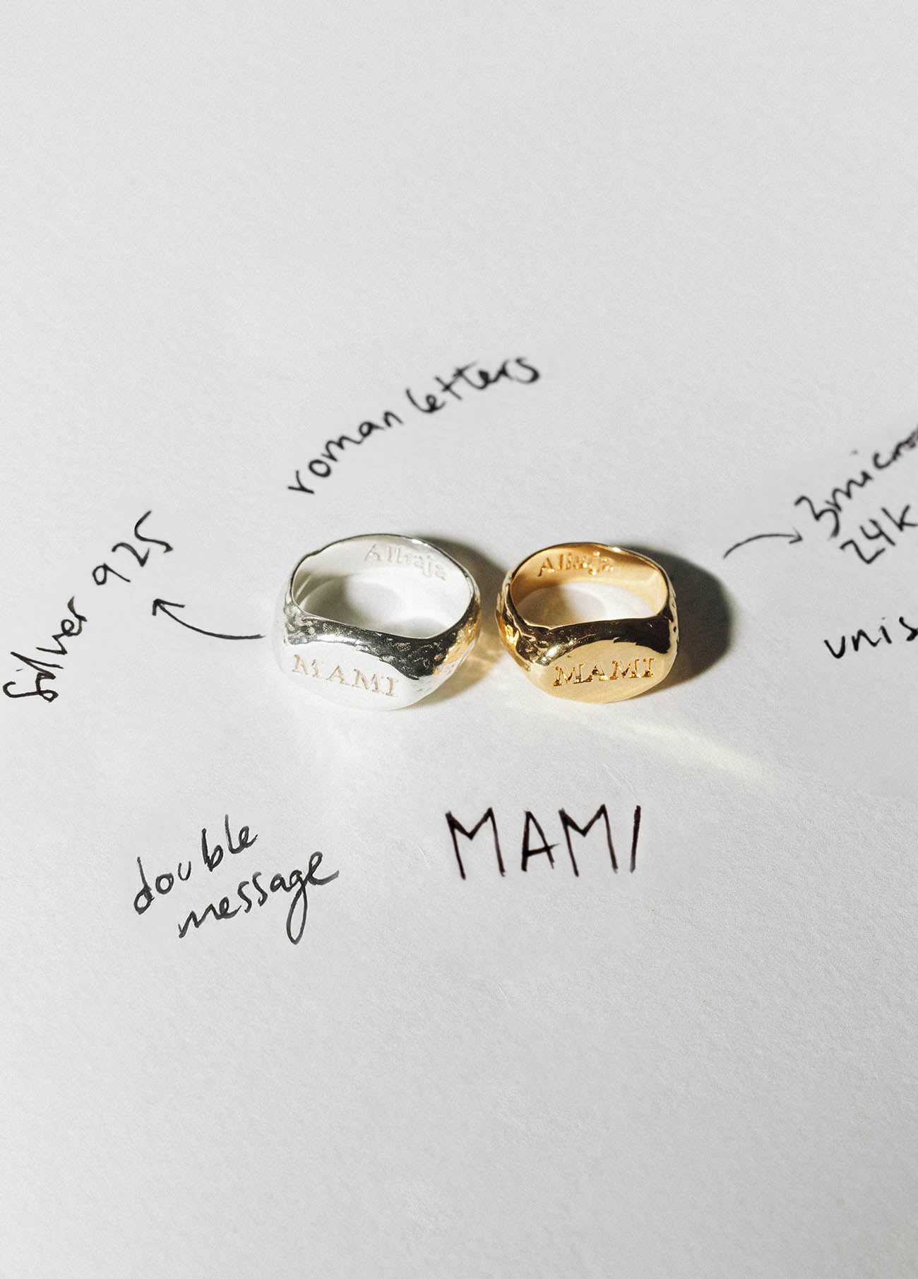 The Mami signet ring is a unisex ring, with Roman letters with a double message ;)