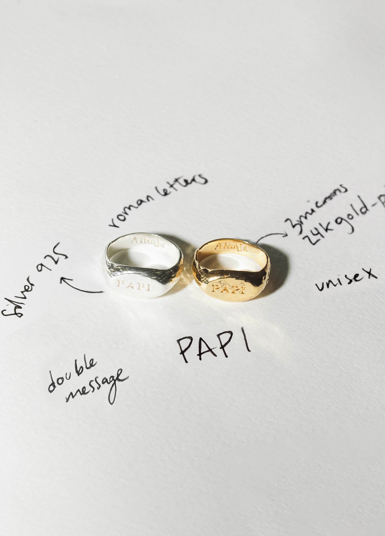 The Papi signet ring is a unisex ring, with Roman letters with a double message ;)