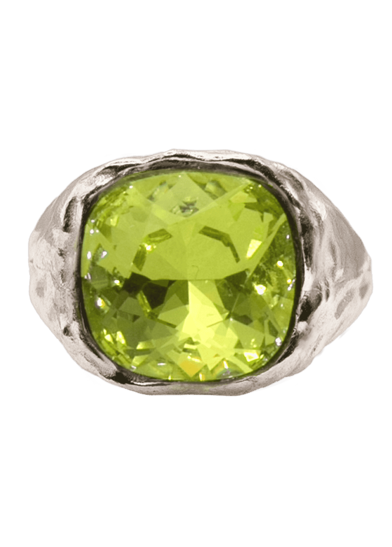 Nuestro primer anillo Amalfi en plata 925. Una fusión de plata y lima que evoca frescura y diversión. El color lima se origina a partir del verde y el amarillo y representa la tranquilidad y la alegría. Compuesto de plata 925 y cristal.
