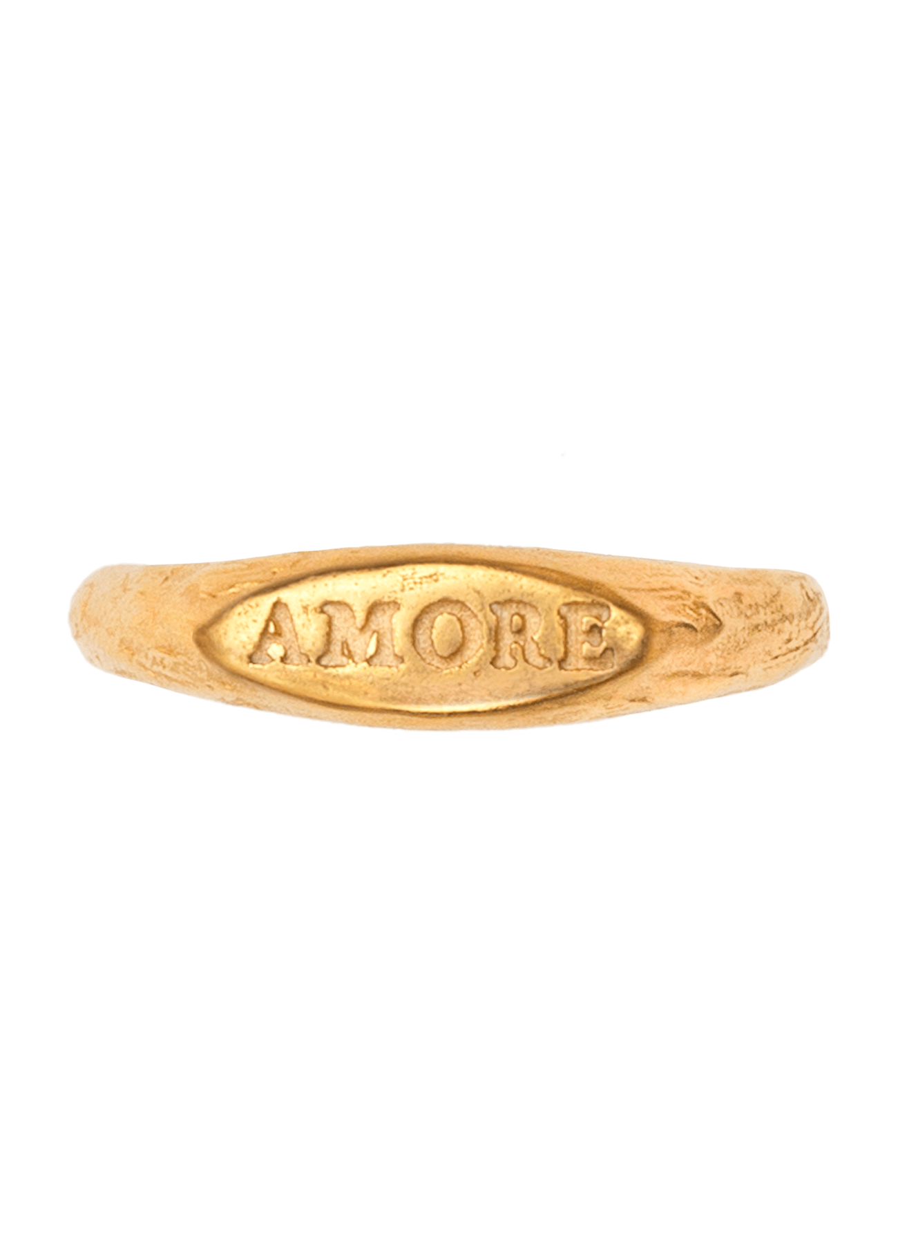 El anillo sello Amore es un sello perfecto para el dedo meñique, con letras romanas y un mensaje claro e importante en la vida: AMORE, amor en italiano. Es el regalo perfecto para uno mismo o para el "L'amore della tua vita". Generalmente una talla 4 o 6 es para un dedo meñique de mujer y la 12 es para un dedo meñique de hombre o un dedo anular de mujer.