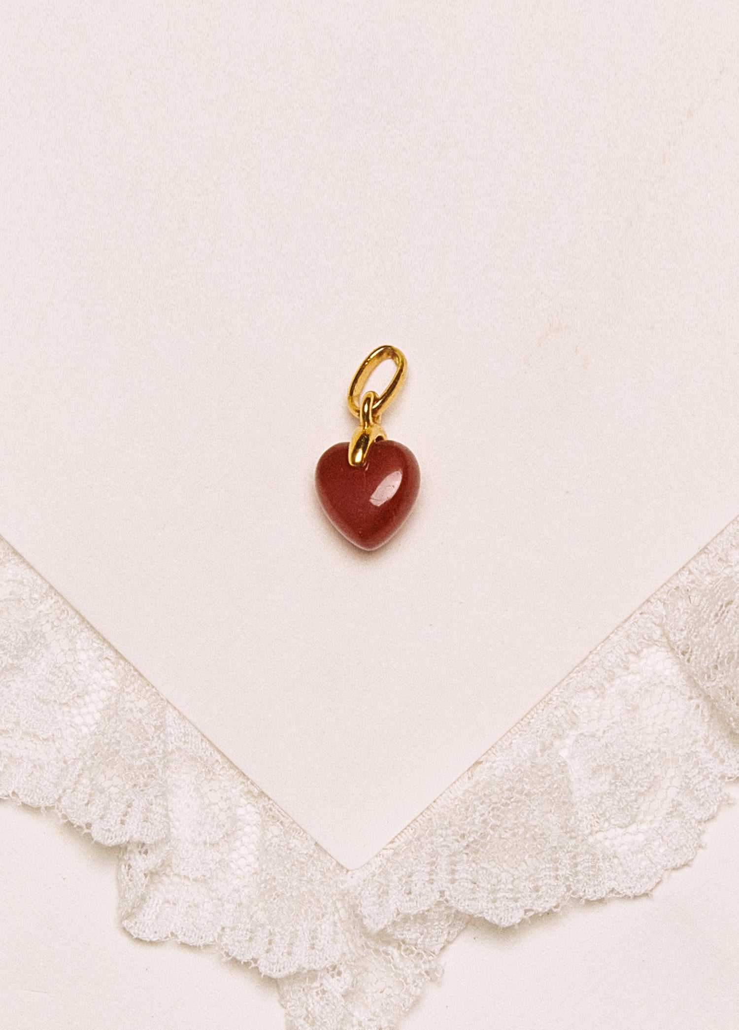 Pequeño Amor es un colgante rojo en forma de corazón, elaborado en ágata natural con terminaciones en oro macizo. Su color intenso, símbolo de pasión, fuerza y, sobre todo, amor, irradia energía y emoción.