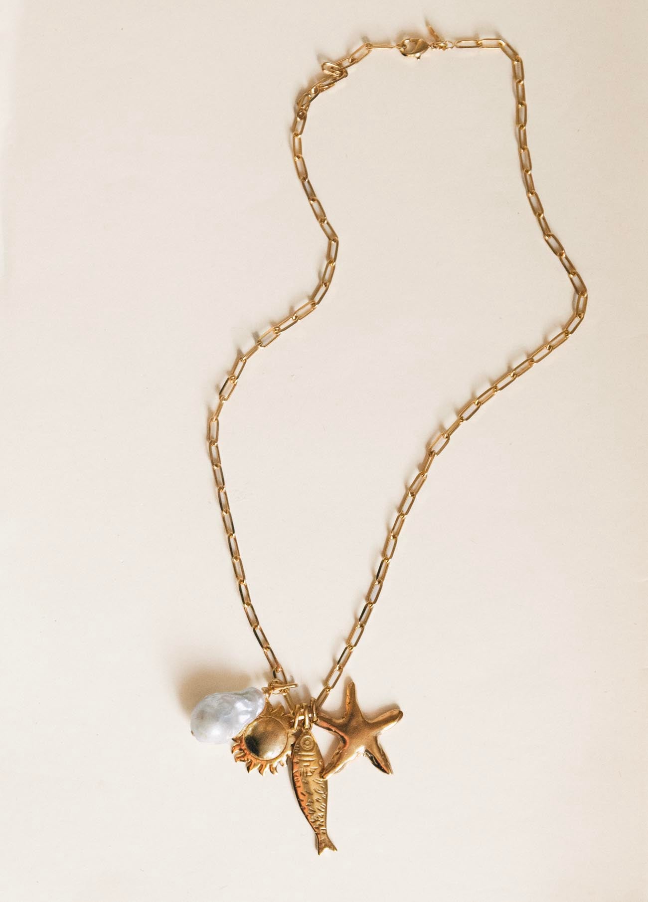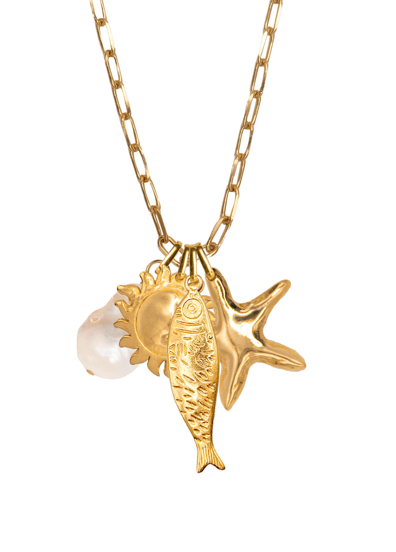 El Collar Milos captura la esencia cálida y vibrante del Mediterráneo. Inspirado en la vida junto al mar, combina símbolos icónicos en un diseño que evoca la conexión con la naturaleza y la libertad de las aguas.