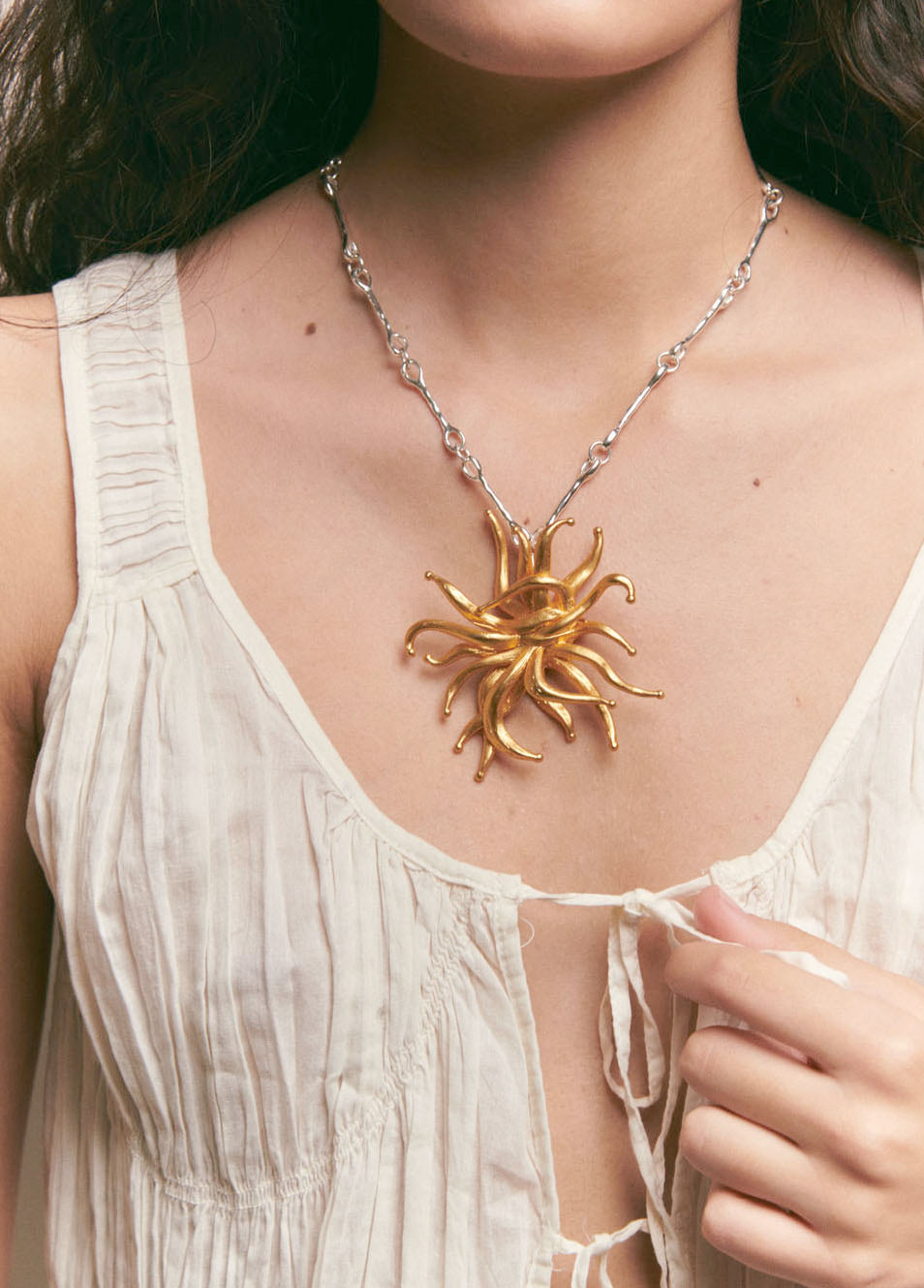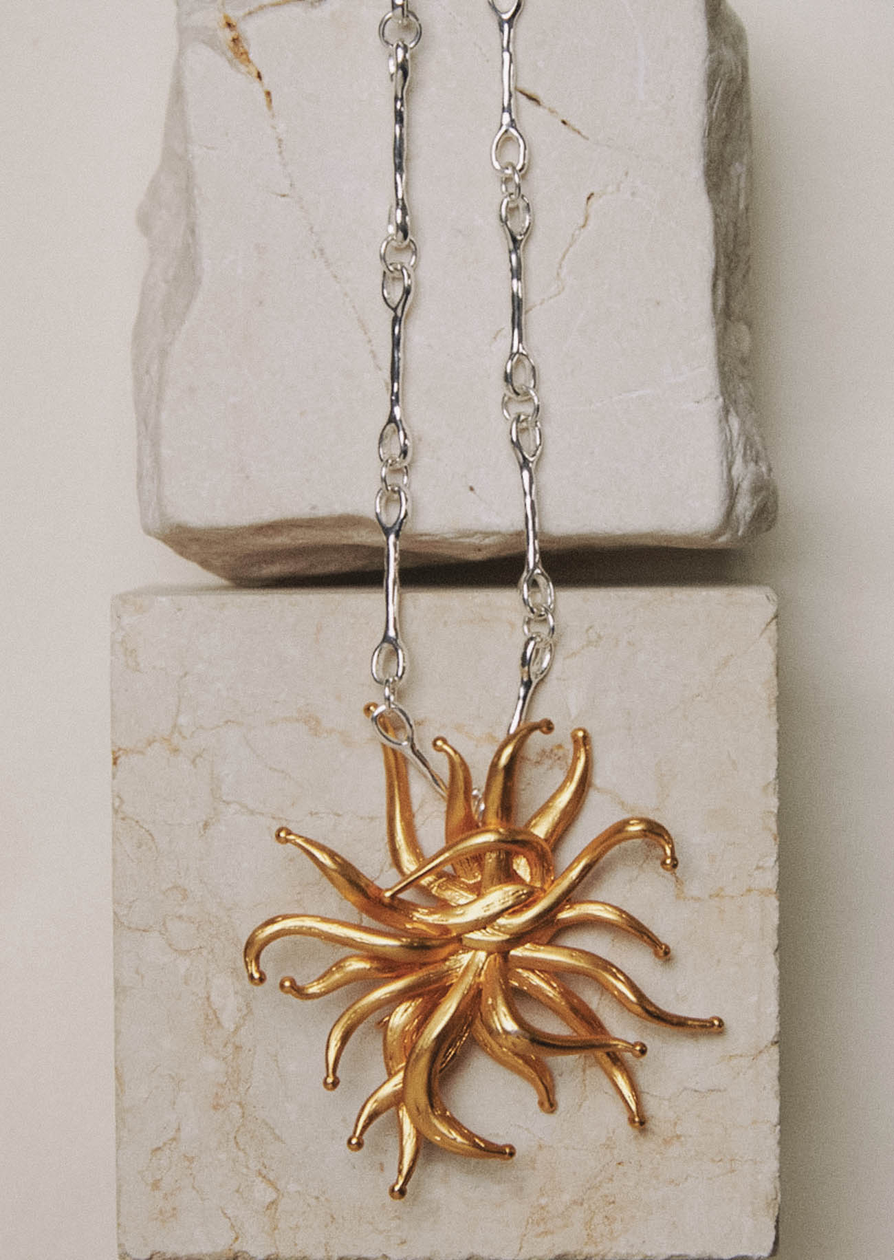 Este collar simboliza la fuerza que sobrevive en lo delicado, y la esencia de las formas marinas más fascinantes.