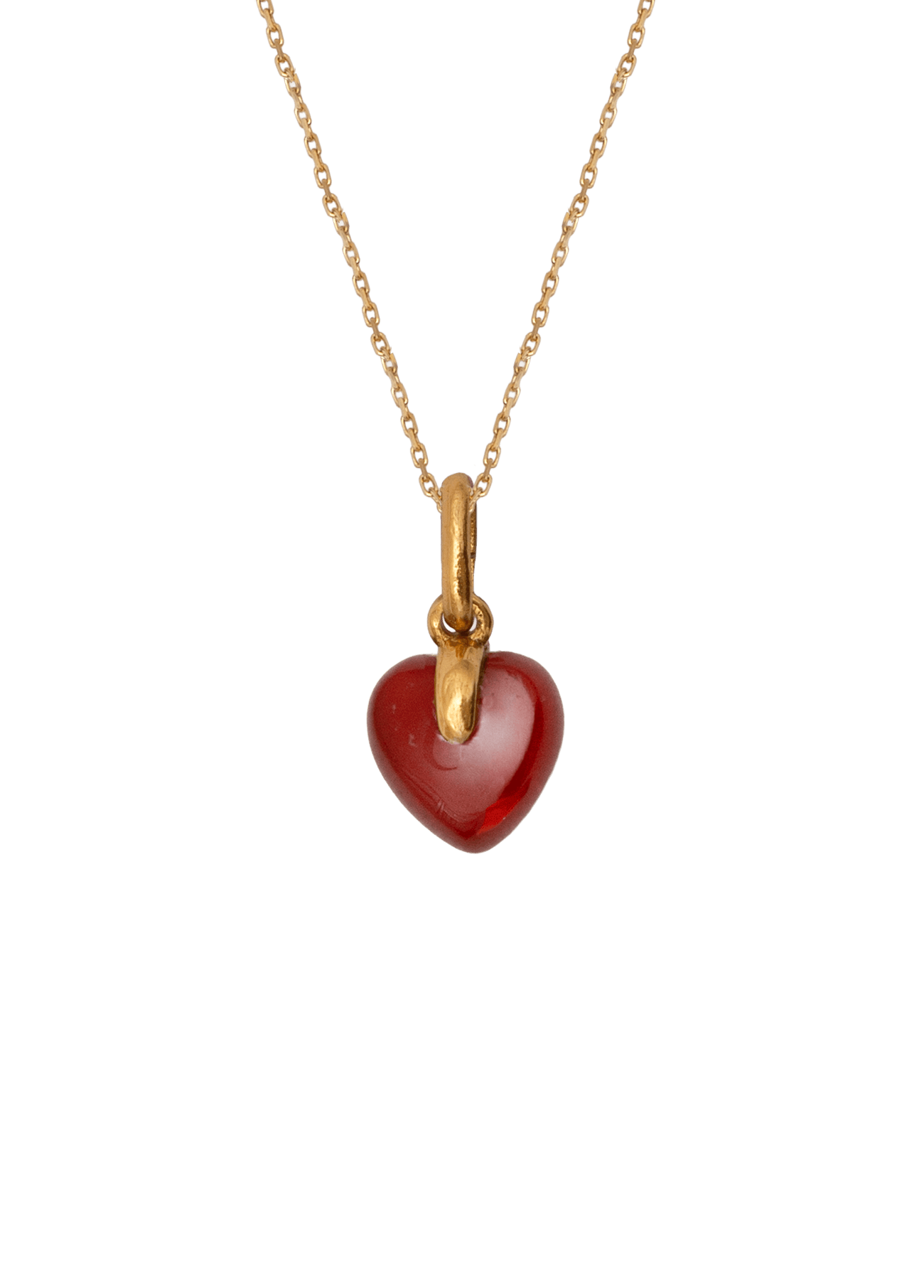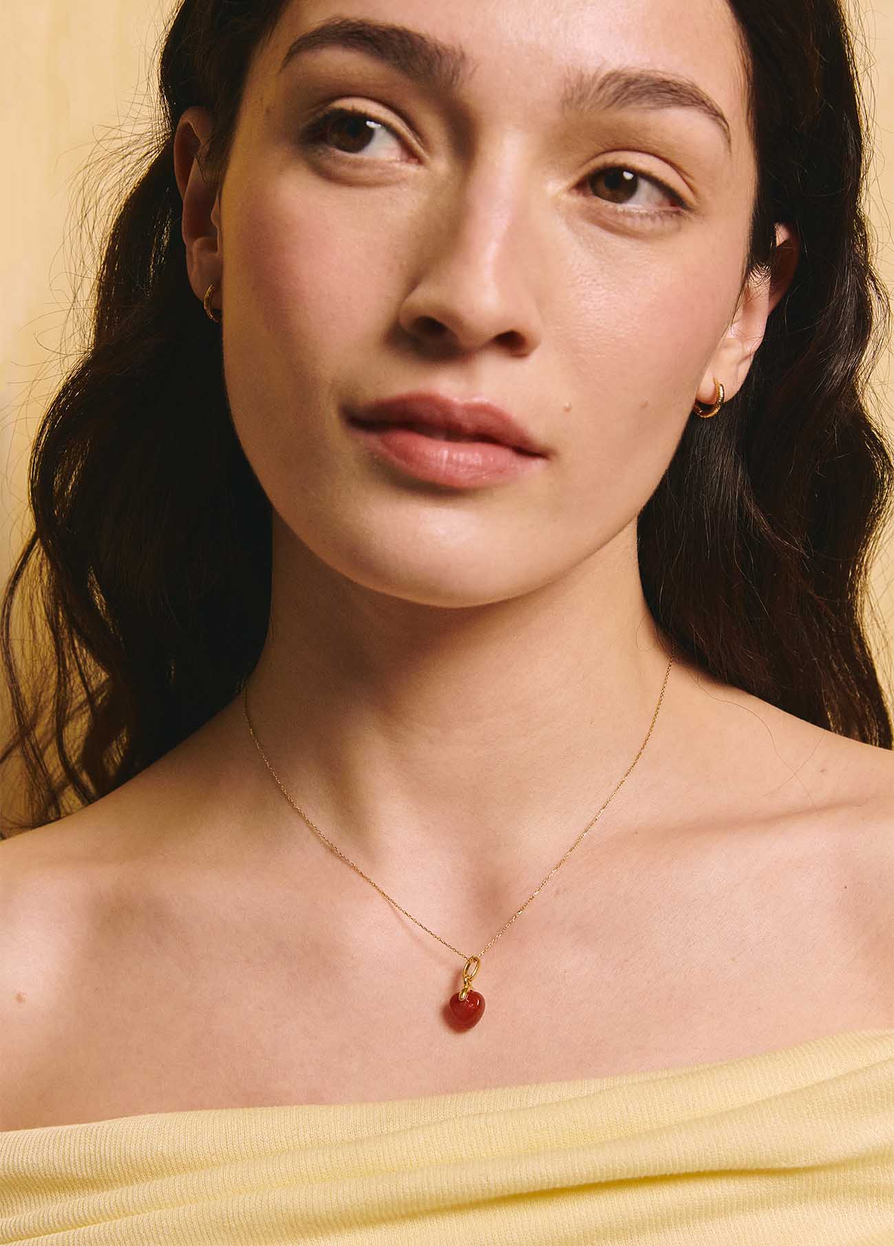 Pequeño Amor es un colgante rojo en forma de corazón, elaborado en ágata natural con terminaciones en oro macizo. Su color intenso, símbolo de pasión, fuerza y, sobre todo, amor, irradia energía y emoción.